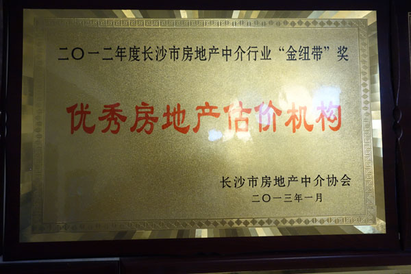 2012年度長沙市房地產中介行業(yè)“金紐帶”獎和“優(yōu)秀房地產估價機構”