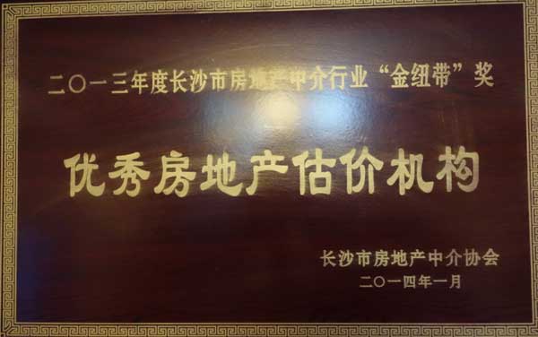 2013年度長(zhǎng)沙市房地產(chǎn)中介行業(yè)“金紐帶”獎(jiǎng)和“優(yōu)秀房地產(chǎn)估價(jià)機(jī)構(gòu)”