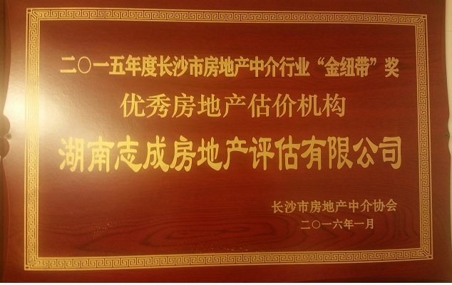 2015年度長沙市房地產(chǎn)中介行業(yè)“金紐帶”獎和“優(yōu)秀房地產(chǎn)估價機構(gòu)”