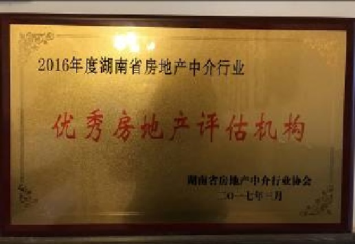 月獲得湖南省房地產(chǎn)中介行業(yè)協(xié)會頒發(fā)的2016年度湖南省房地產(chǎn)中介行業(yè)“優(yōu)秀房地產(chǎn)評估機(jī)構(gòu)”。