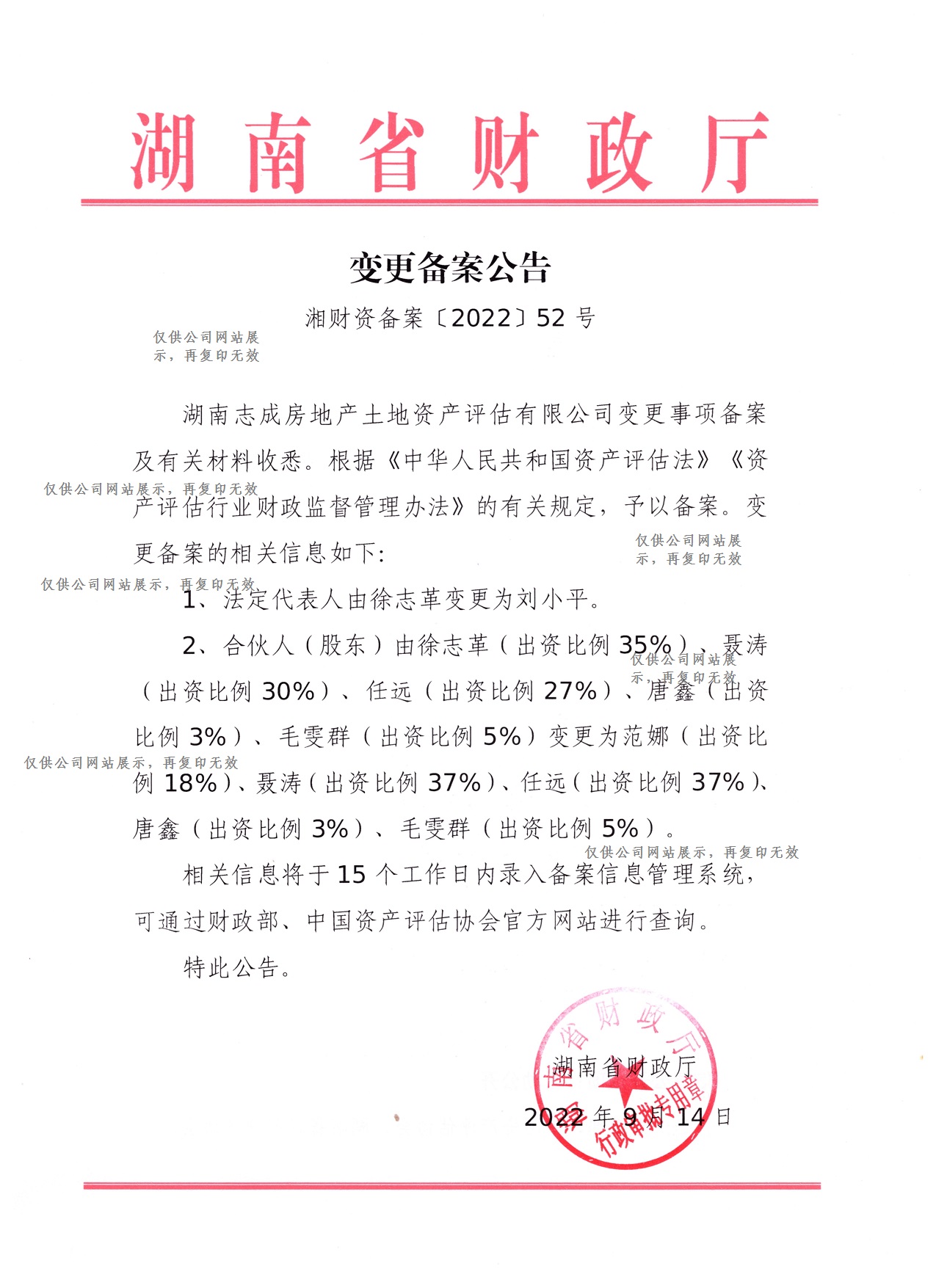 資產(chǎn)評估資質(zhì)備案公告
